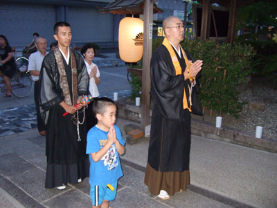 8月8日 点火前のお勤めの様子 |